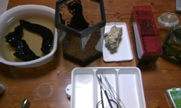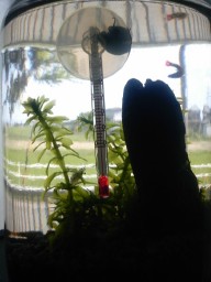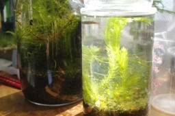 【水量】4L弱 【維持期間】1年 【蓋】ホコリよけに網をかぶせてた 【設備】エアレーション 【置場所】北側の窓際直射日光なし 【底砂・土】赤玉やら濾過砂利混合 【生体】石巻貝、ミナミヌマエビ 【水草】カボンバ、アナカリス、モス、 【コメント】ボトルアクアにカボンバは無理